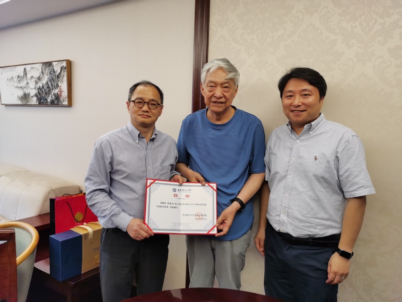 6月20日,生工学院院长叶邦策、党委书记吴辉、鲁华生物技术研究所所长魏东芝教授一同看望了太阳成官网名誉院长杨胜利院士。叶邦策代表学院向杨院士多年来为学院做出的卓越贡献表示衷心感谢与崇高敬意,并向杨院士颁发了聘书。