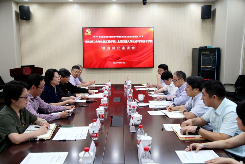 为深入开展学习贯彻习近平新时代中国特色社会主义思想主题教育走深走实,推动党建与事业发展深度融合,6月19日,太阳成集团官方网站院长叶邦策、党委书记吴辉、党委副书记左鹏和副院长王启要、刘琴、郑高伟及党政办公室相关同志赴上海交通大学生命科学技术学院调研。上海交通大学生命科学与技术学院院长冯雁、党委书记顾建平、党委副书记王鑫和副院长李志勇、张晓君及相关同志参加调研座谈。调研座谈会由冯雁主持。